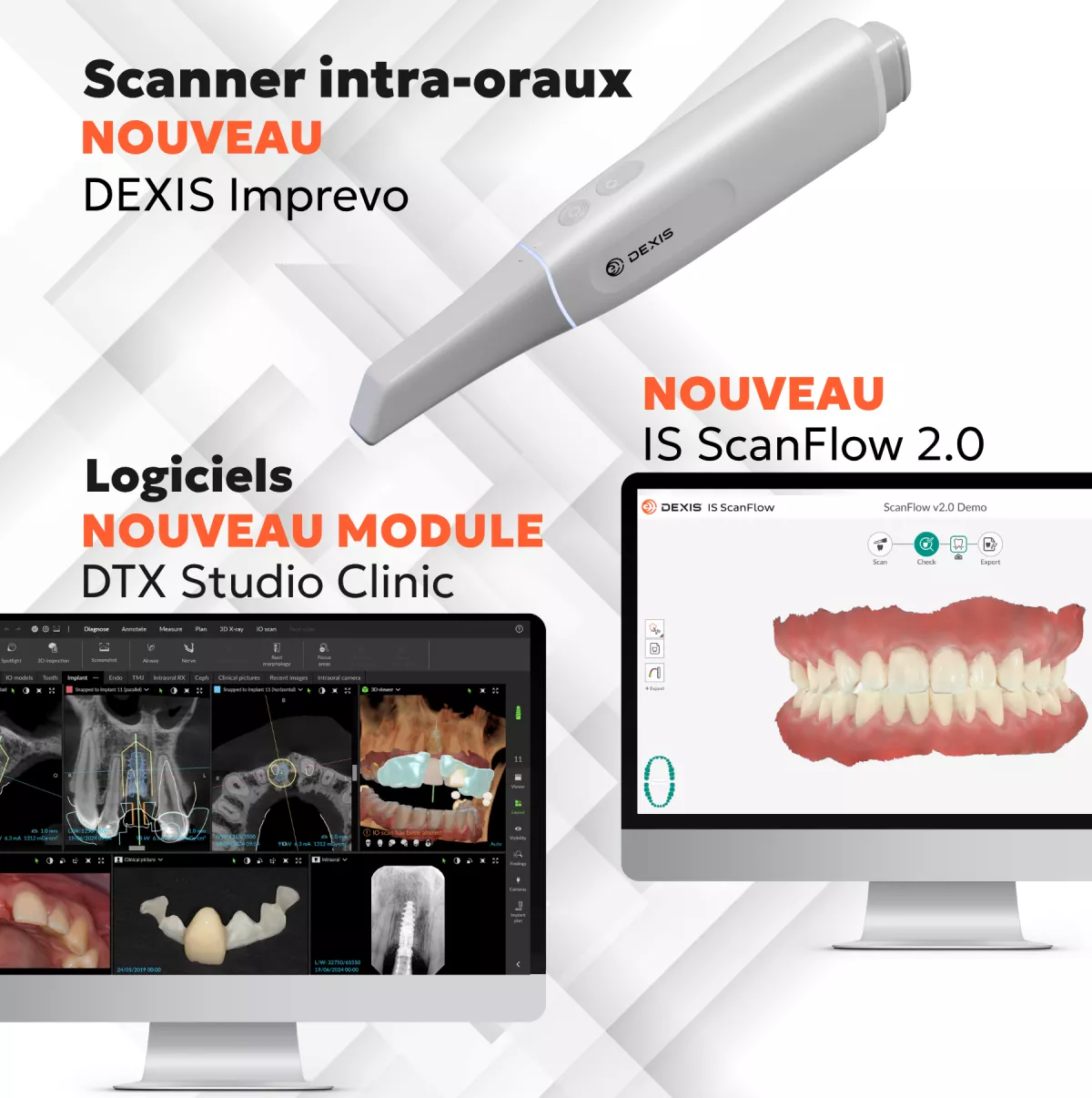 Scanners intra-orauxLes scanners intra-oraux DEXIS, associés au logiciel IS ScanFlow, offrent une précision exceptionnelle, des flux de travail de numérisation fluides et de puissants outils de communication avec les patients. Conçue pour la précision et la facilité d'utilisation, cette solution aide les cliniciens à capturer des empreintes numériques sans effort et à les intégrer dans un flux de travail entièrement numérique.